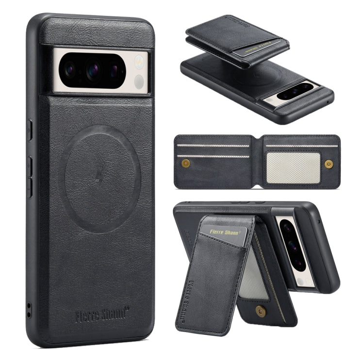 Fierre Shann Cowhide Vertical Flip Magnetic Card Holder Phone Case, For Google Pixel 7