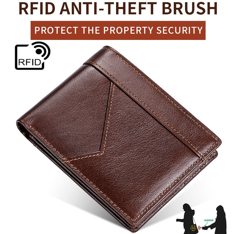 Stitching Leather Men Wallet RFID Anti-Theft Wallet, Black, Coffee, Brown