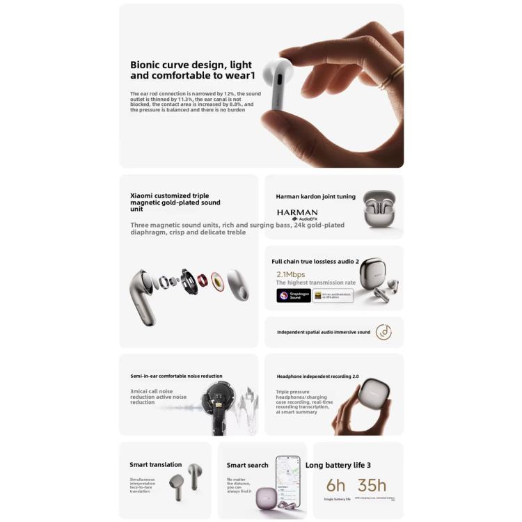 Single earbud battery life (ANC on): Approximately 3.5H,